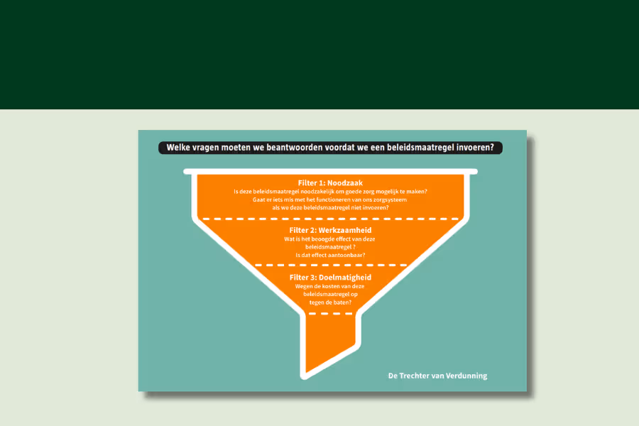 De Trechter van Verdunning is een hulpmiddel om kritisch te kijken naar nieuwe en bestaande maatregelen. Welke regels zijn noodzakelijk en welke regels zouden we kunnen schrappen?